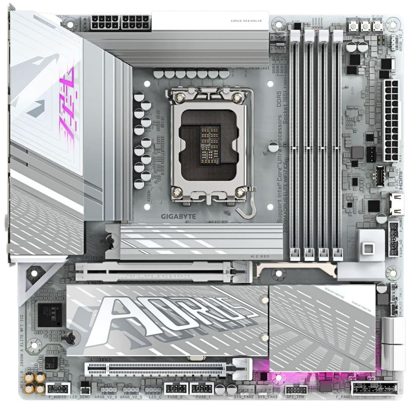 Материнська плата Gigabyte Z890M AORUS ELITE WiFi7 ICE (Z890M AORUS ELITE WIFI7 ICE) (Socket 1851, Intel Z890, Micro-ATX)