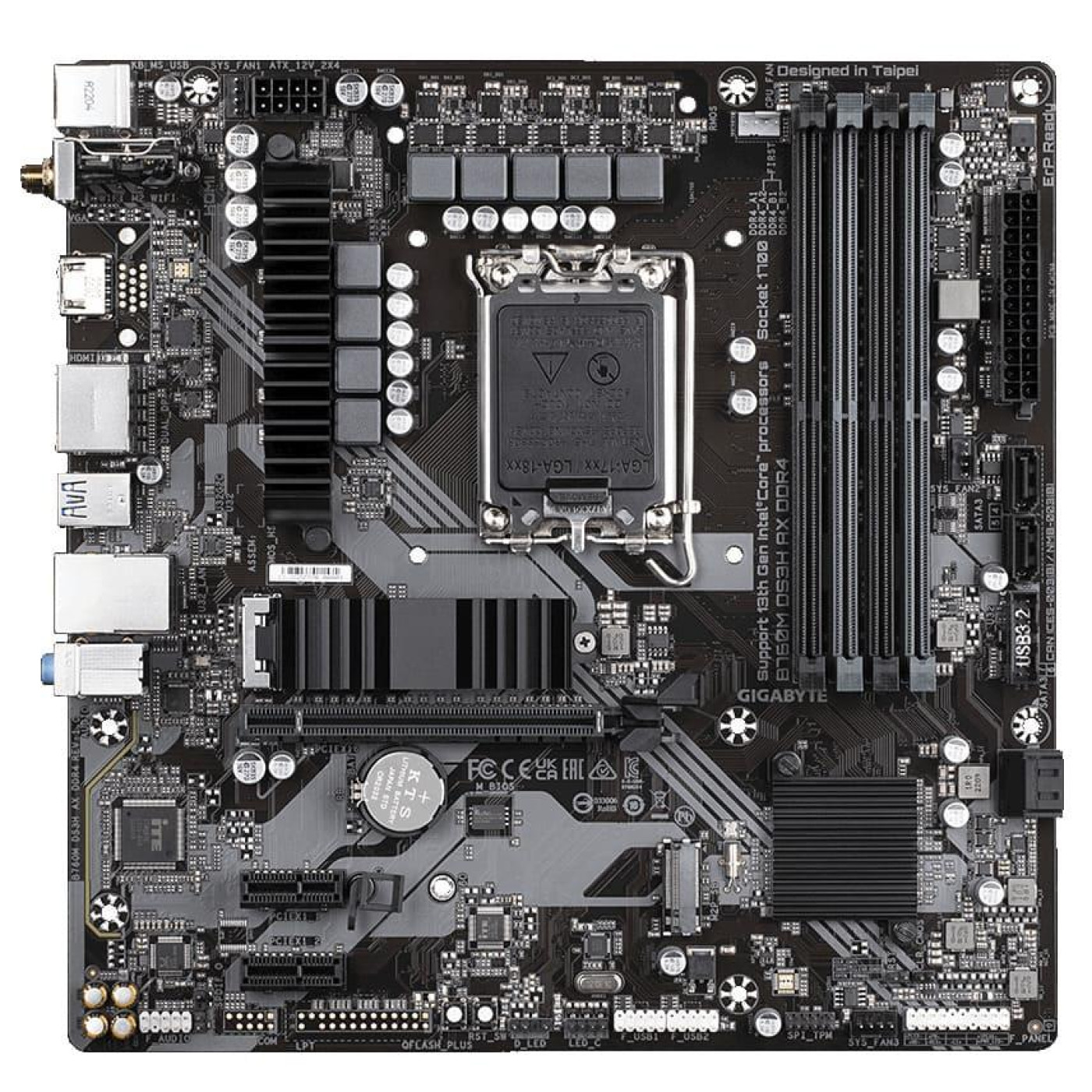 Материнська плата Gigabyte B760M DS3H AX DDR4 (B760M DS3H AX DDR4) (Socket 1700, Intel B760, Micro-ATX)