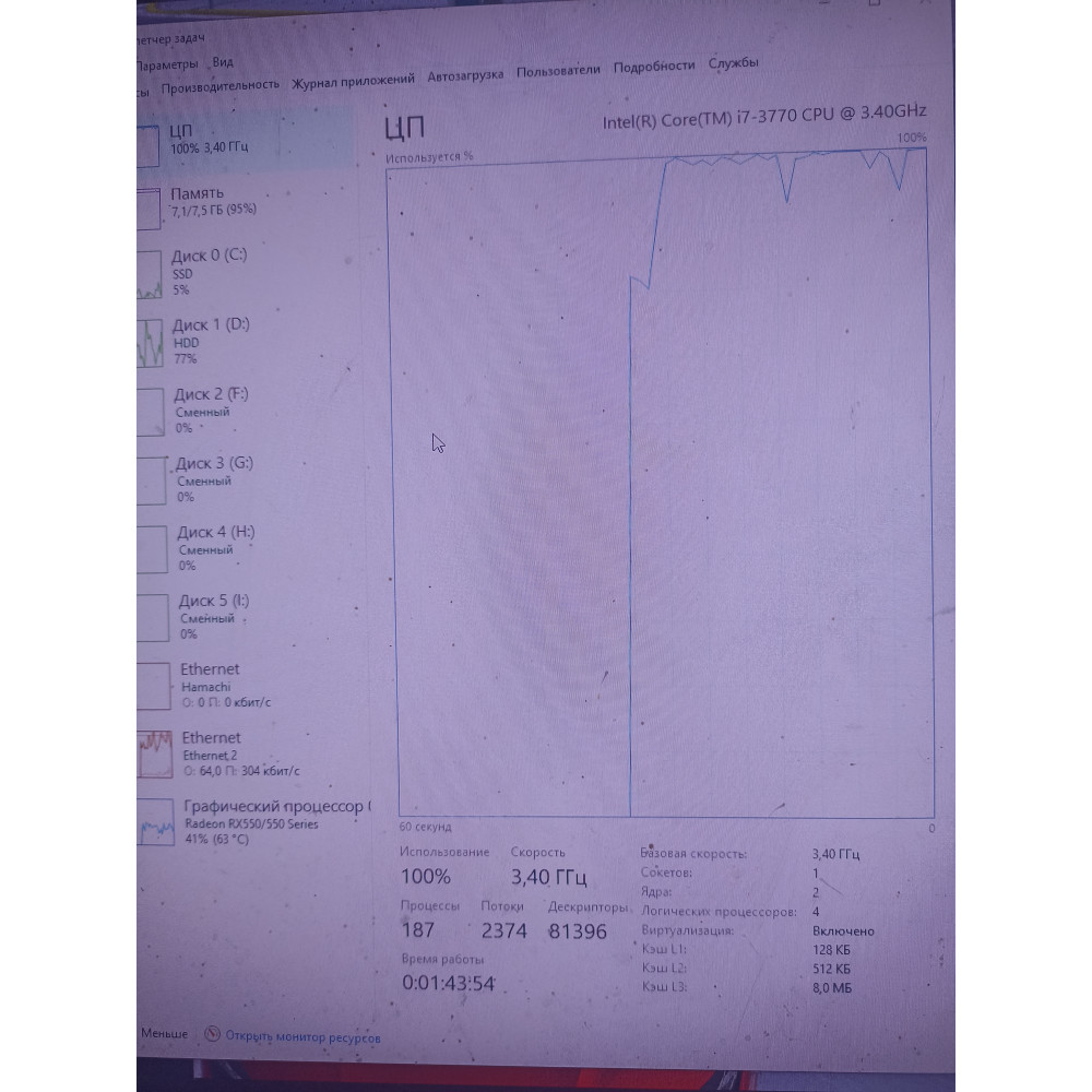 Я купив цей процесор, але в мене в диспетчері задач показує 2 ядра 4 потока, а тут написано що 4 ядра 8 потоків