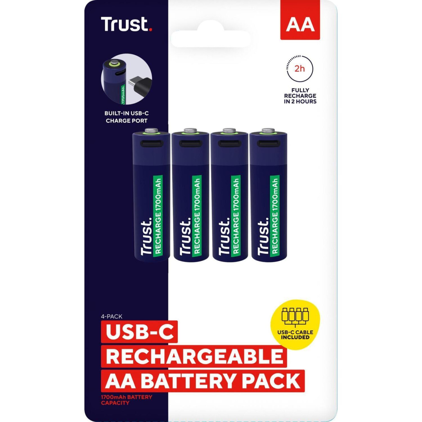 Акумулятор Trust AA 1700 мАг, TYPE-C, 4 шт, синий (25631_TRUST)