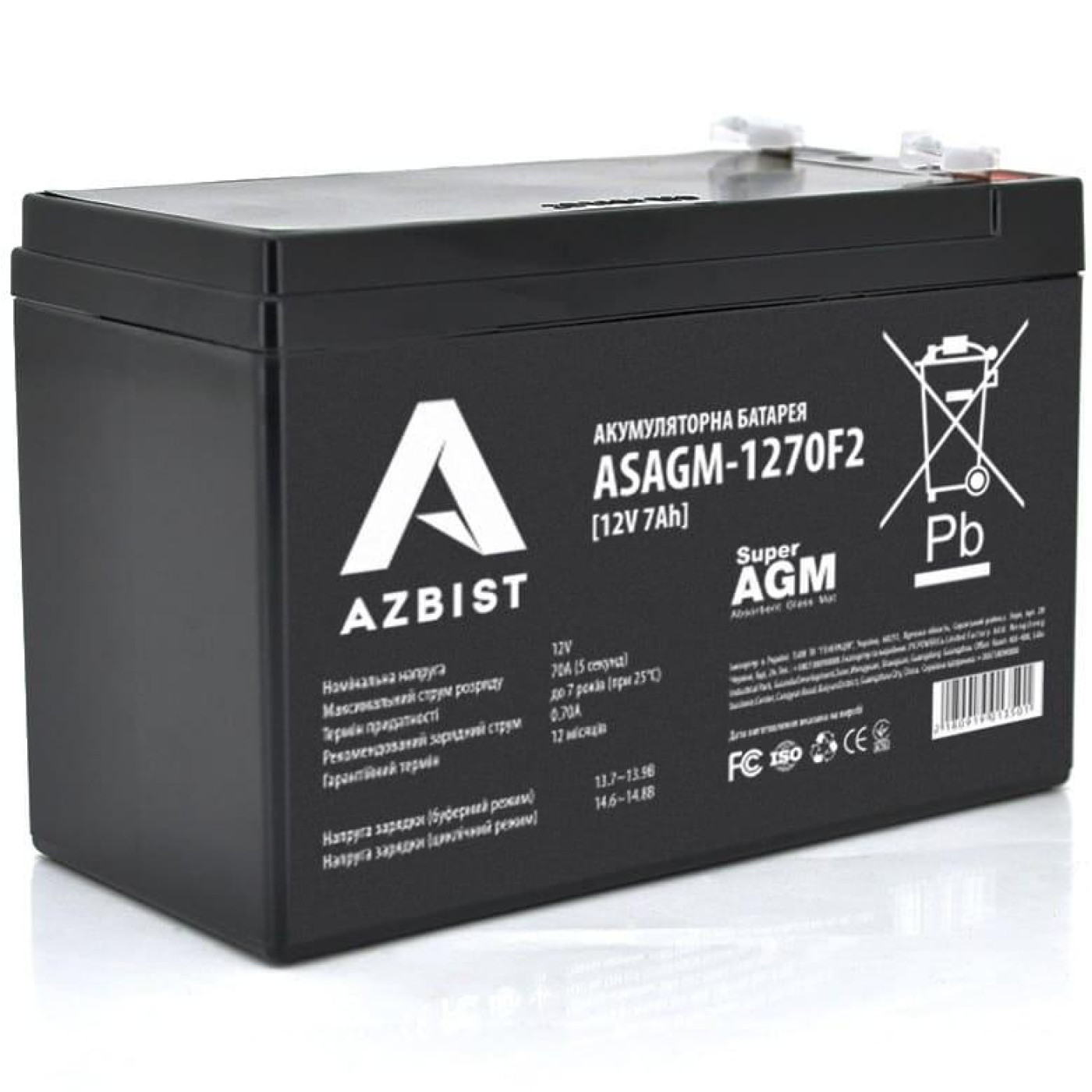 Аккумуляторная батарея для ИБП AZBIST Super AGM ASAGM-1270F2, Black Case, 12V 7.0Ah (151 х 65 х 94 (100)) Q10 ASAGM-1270F2