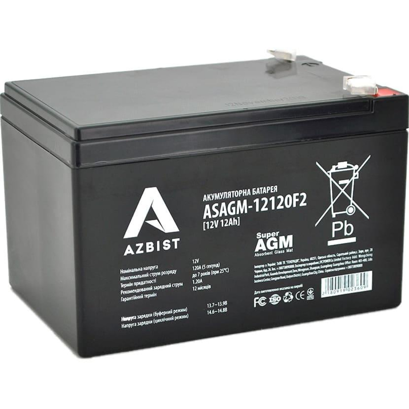 Аккумуляторная батарея для ИБП AZBIST 12V 12 Ah Super AGM ASAGM-12120F2