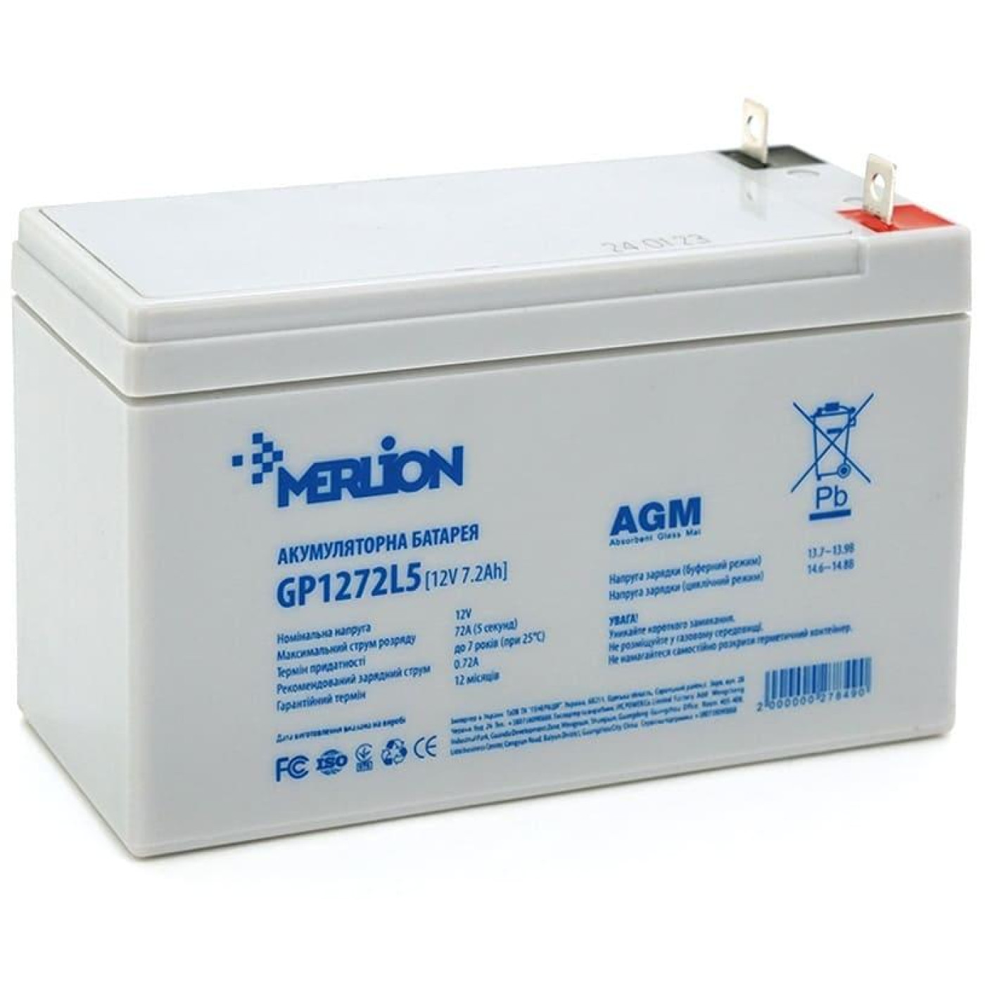 Аккумуляторная батарея для ИБП Merlion AGM 12 V / 7.2 А*ч (GP1272L5)
