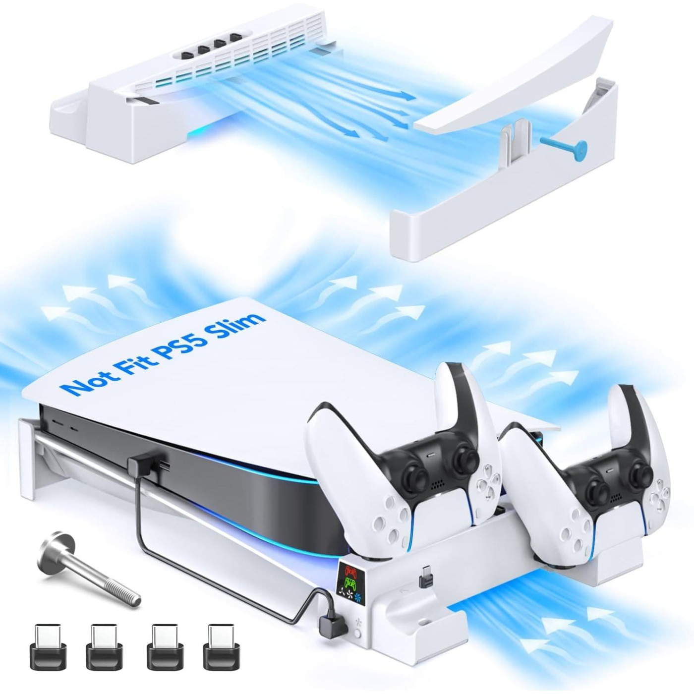 Горизонтальний стенд OIVO для PS5 c вентилятором и зарядной станцией для контролера