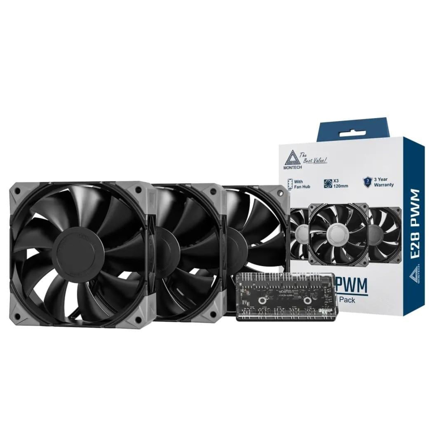 Комплект вентиляторjв MONTECH E28 120MM PWM 3 PACK (B) (E28 3 PACK (B))