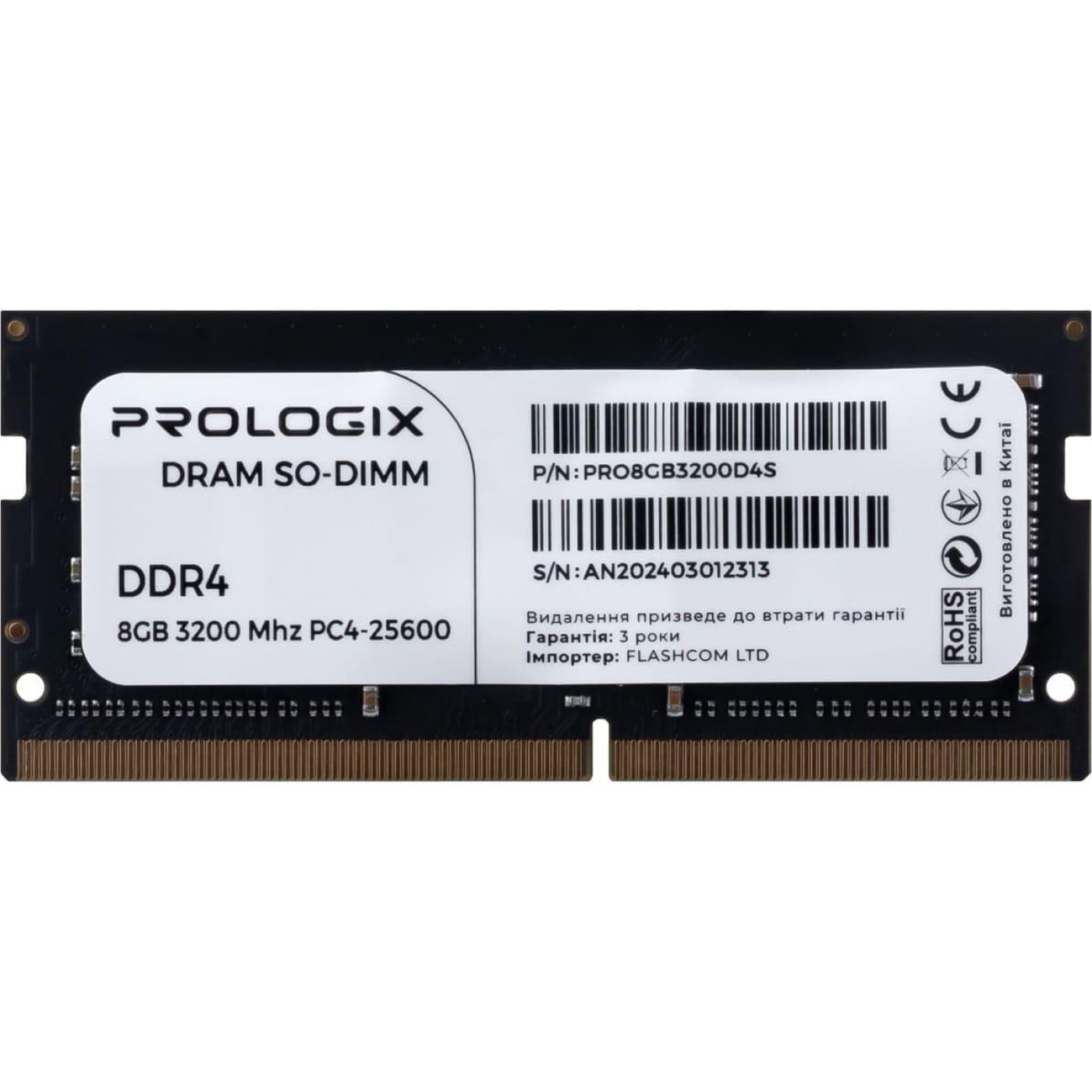 Модуль памяти ProLogix DDR4 8GB SO-DIMM 3200MHz (PRO8GB3200D4S)