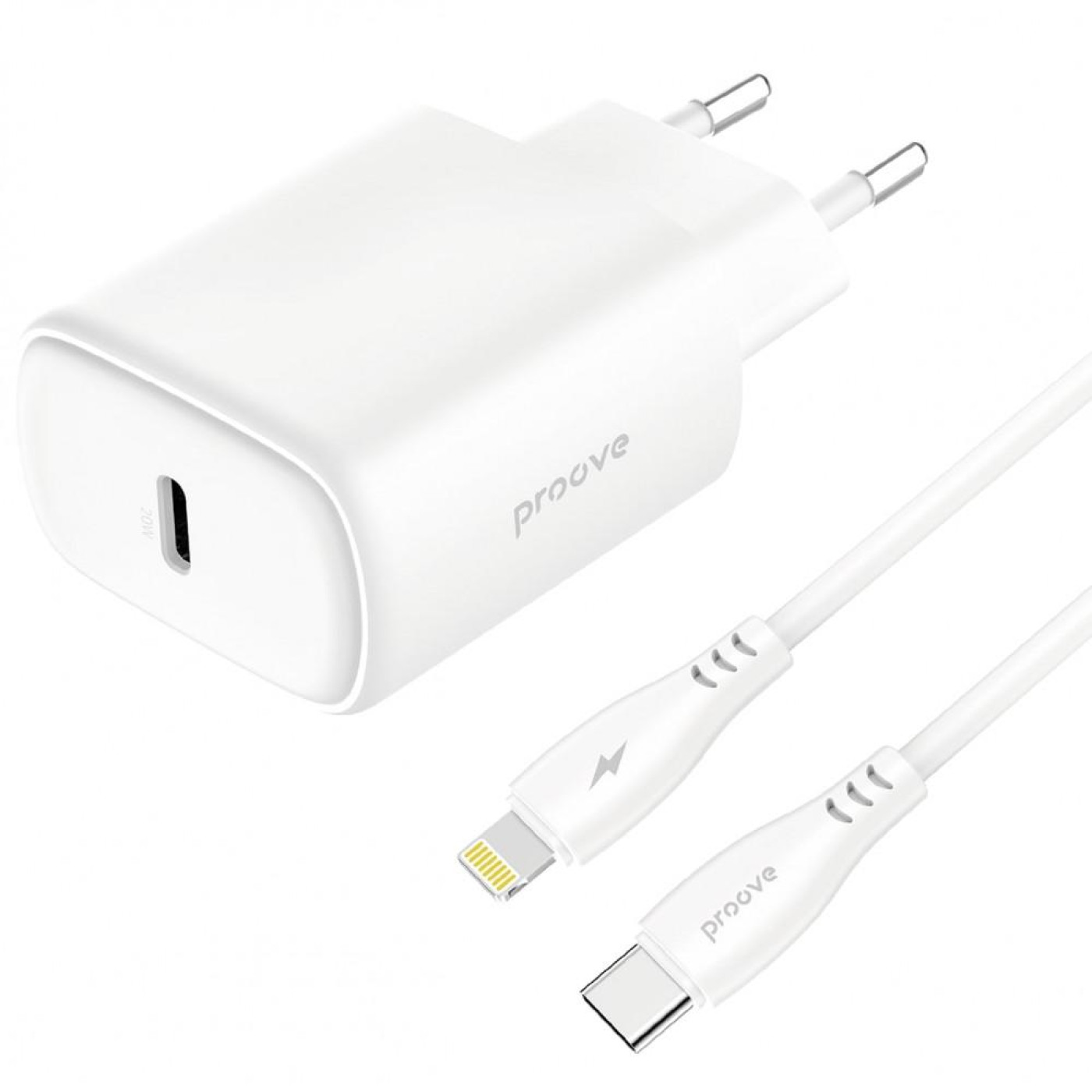 Зарядное устройство Proove Silicone Power 2 20W (Type-C) + Cable Type-C to Lightning (1m) white (WCSP22010002)